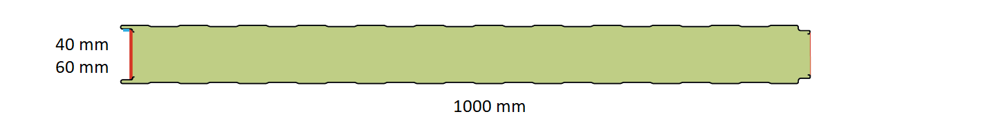 Geribde sandwichpanelen 40 mm dik